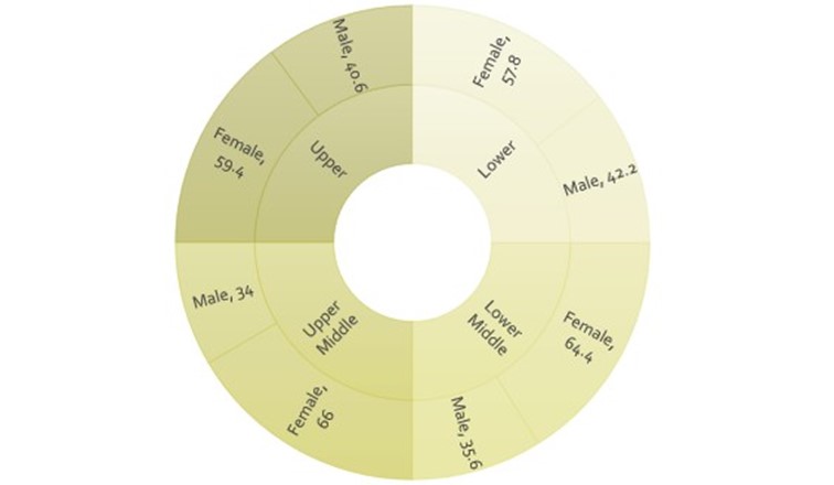 In 2025 we had a sharp decline in the Gender Pay Gap; from 6.14% in 2024 to 2.4% in 2025. Alongside this, we have an increase in the percentage of women in the Upper Earnings Quartile (up to 59.4% of employees in the upper quartile in 2025 from 54.5% in 2024.) Furthermore, the median Gender Wage Gap has been reduced to 0%.